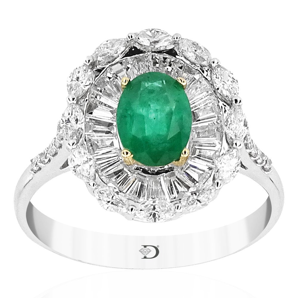 1,77 Carat Diamond Emerald Ring
