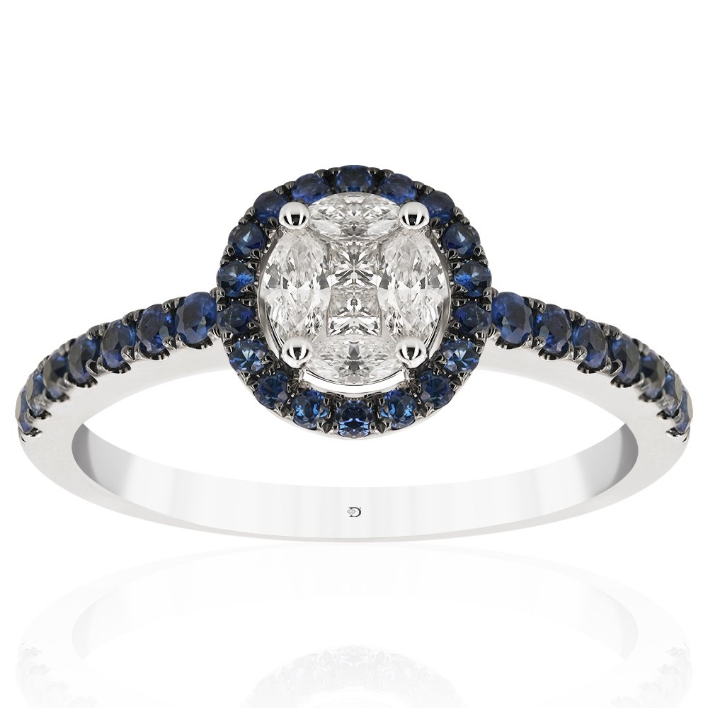 0,76 Carat Diamond Sapphire Ring